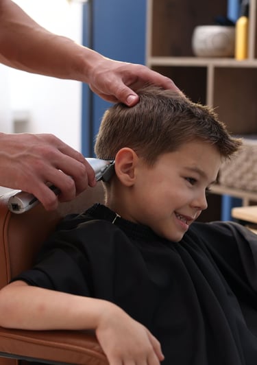 Corte masculino infantil realizado com técnica, cuidado e atenção aos detalhes.